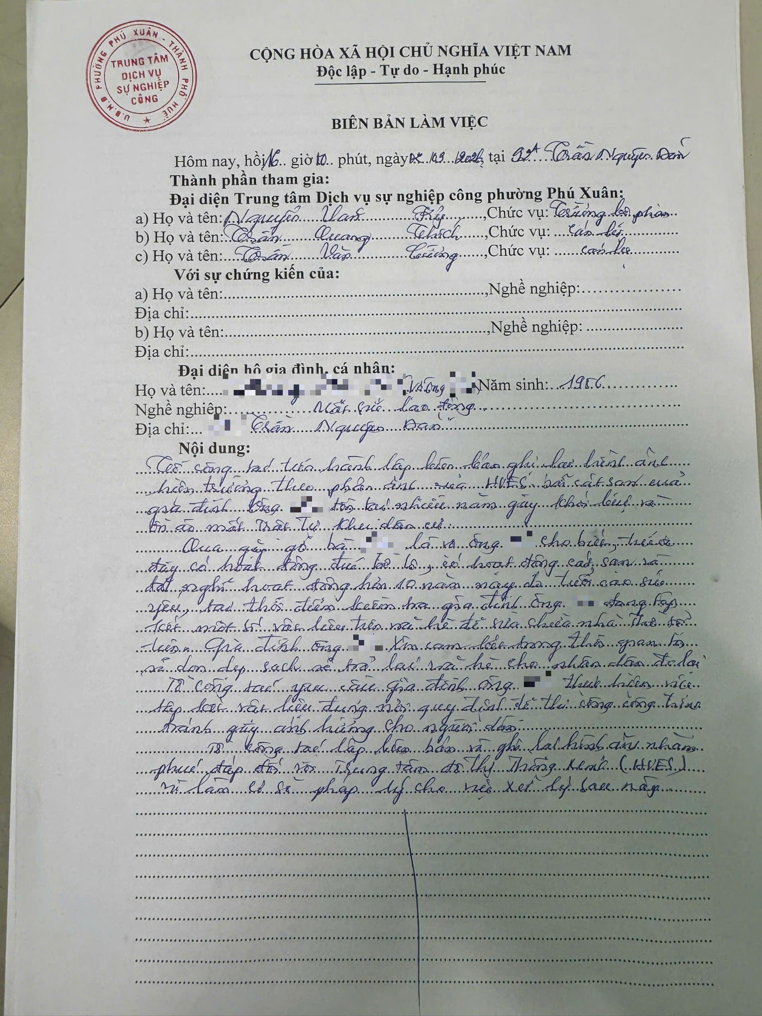 Vấn đề quý Ông/Bà phản ánh, UBND phường Phú Xuân đã chỉ đạo Trung tâm Dịch vụ sự nghiệp công phường kiểm tra và xin thông báo kết quả như sau: