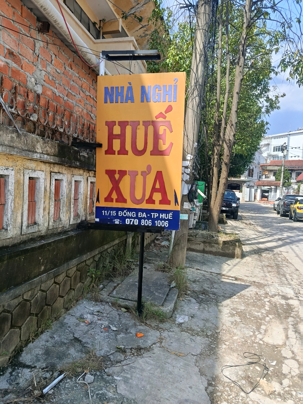Bảng hiệu nhà nghỉ Huế Xưa tại 11/15 Đống Đa, cổng phụ trường Mầm Non 1 được dựng quá thấp. Lấn chiếm lòng đường gây nguy hiểm cho các học sinh (cạnh nhọn được dựng cẩu thả), hơn nữa cản trở giao thông vào thời điểm phụ huynh đưa đón học sinh. Kính mong chính quyền địa phương xem xét và có phương án an toàn cho học sinh cũng như người dân. Xin cám ơn.