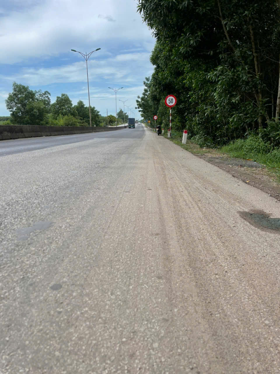 Tại vị trí Km800+800 (Trái tuyến) Quốc lộ 1, đơn vị thi công công trình "Sửa chữa trùng tu lần thứ 2 đoạn từ Km791A+500- Km848+875" có cắm biển báo P.127 (biển báo Tốc độ tối đa cho phép) nhưng bị che khuất tầm nhìn.