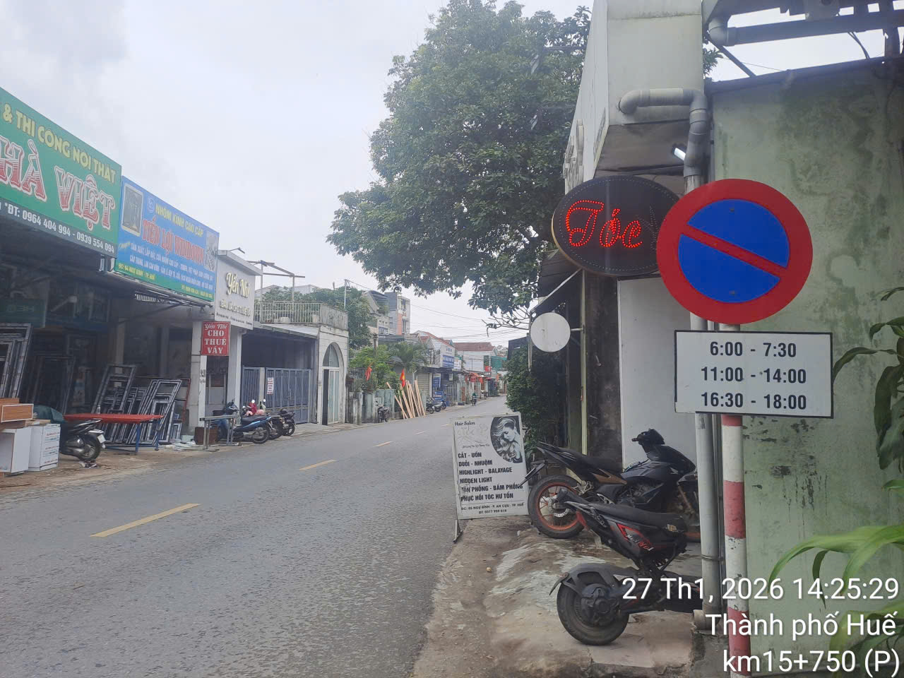 Hiện nay, biển báo cấm đỗ xe theo khung giờ được lắp đặt tại 83 Ngự Bình, phường An Cựu, vị trí trên bị che khuất bởi cây xanh, đặc biệt là phần bảng phụ ghi khung giờ cấm. Do đó: