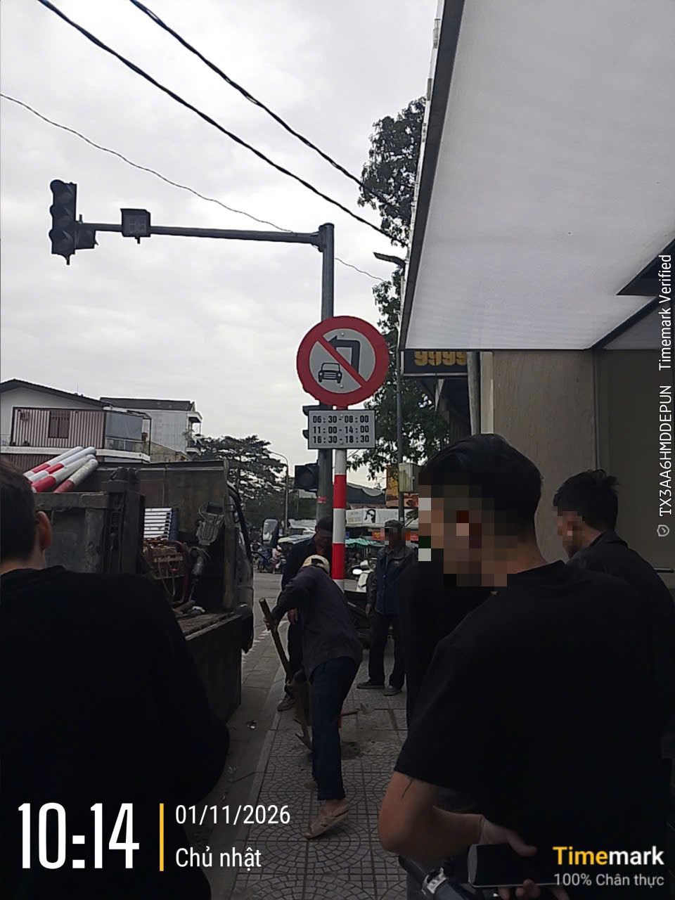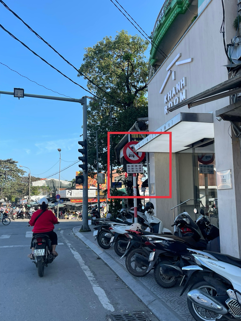 Trong thời gian gần đây, em nhận thấy tại khu vực ngã tư dẫn qua cầu Vỹ Dạ có lắp đặt biển báo cấm ô tô rẽ trái theo khung giờ. Tuy nhiên, hiện biển báo được đặt quá sát trụ đèn tín hiệu giao thông và ngay tại ngã tư, đồng thời bị bảng hiệu của hộ kinh doanh che khuất tầm nhìn, khiến người điều khiển phương tiện rất khó quan sát và nhận biết kịp thời khi lưu thông.