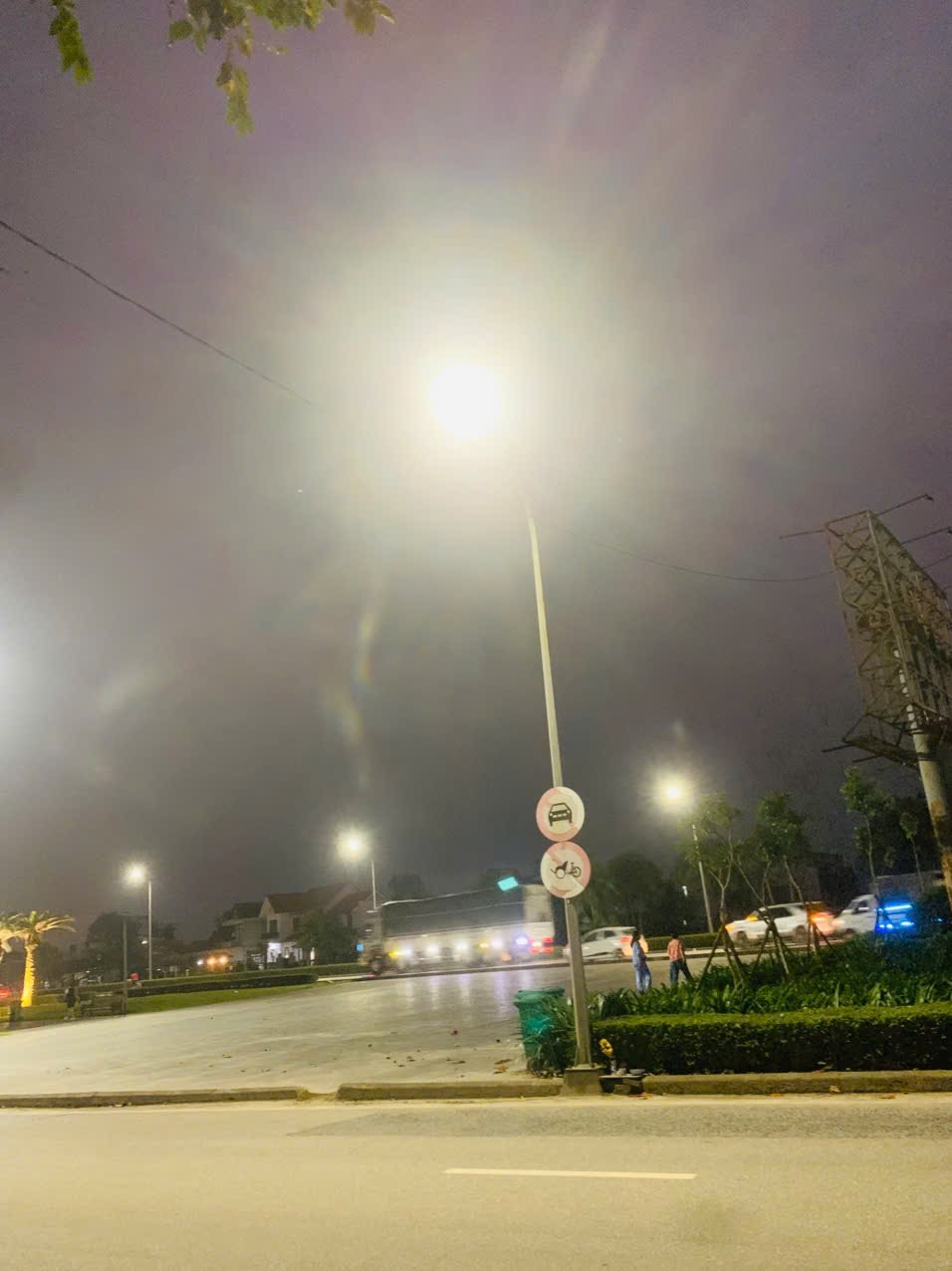Tại công viên An Hoà cửa ngõ phía Bắc đường Lý thái Tổ: 1 cột điện không có bóng điện và biển báo cấm xe ô tô, xích lô vào công viên bị phai màu. Vị trí: 1 cột đèn đối diện số nhà 76 Lý Thái Tổ, Hương An, Huế đèn bị hỏng.