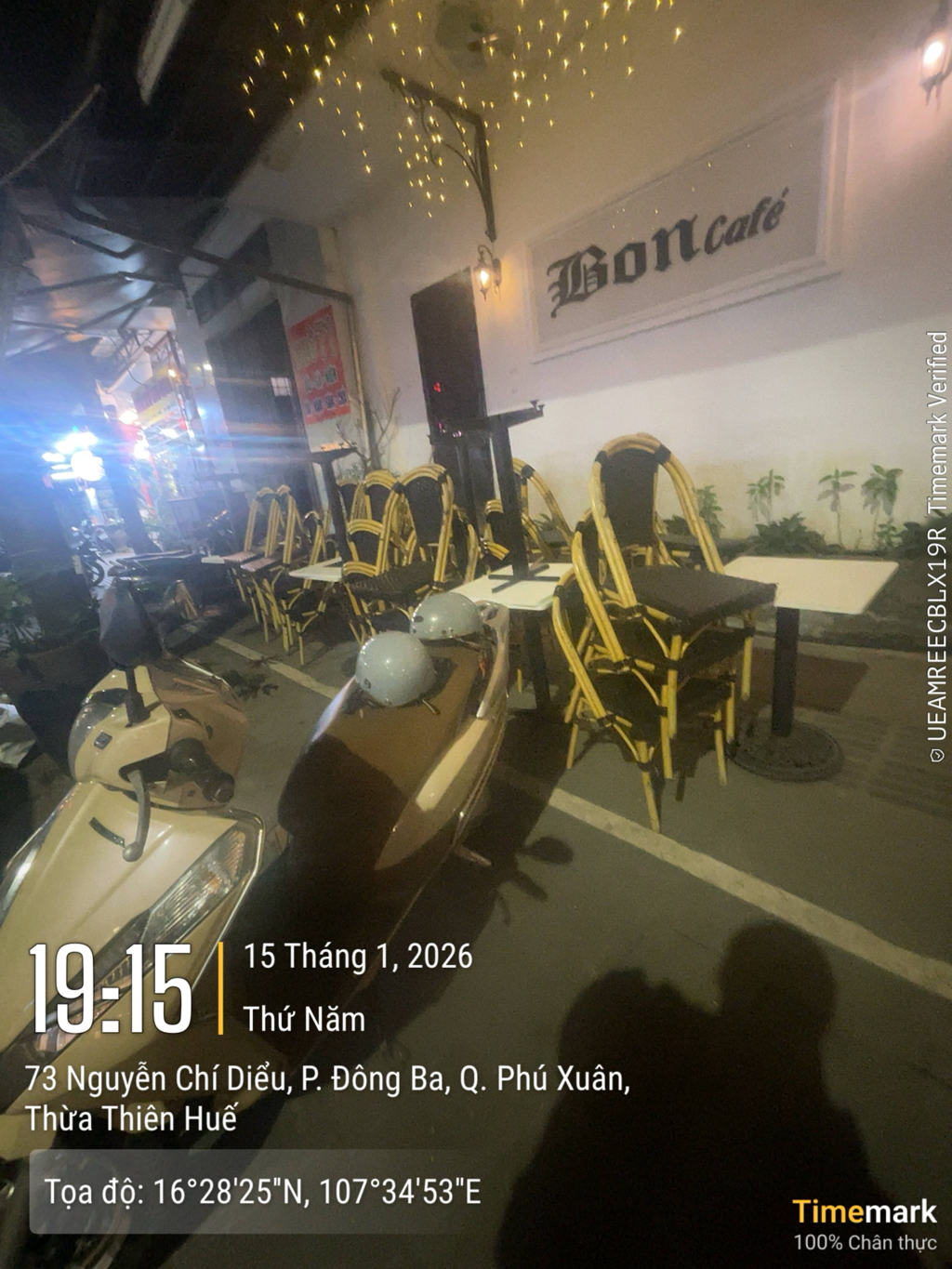 Tại ngã 4, 92A Đinh Tiên Hoàng và 73 Nguyễn Chí Diểu quán bon cafe (92A Đinh Tiên Hoàng) bày bàn ghế ra rộng lấn chiếm hết phần đường đi bộ gây cản trở người đi bộ vào 19h tối 15 tháng 1 năm 2026.