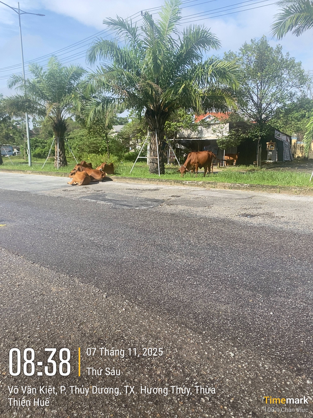 Bò thả rông trên đường Võ Văn Kiệt gần Trường Đại học Luật - Huế gây nguy hiểm cho người đi đường.
