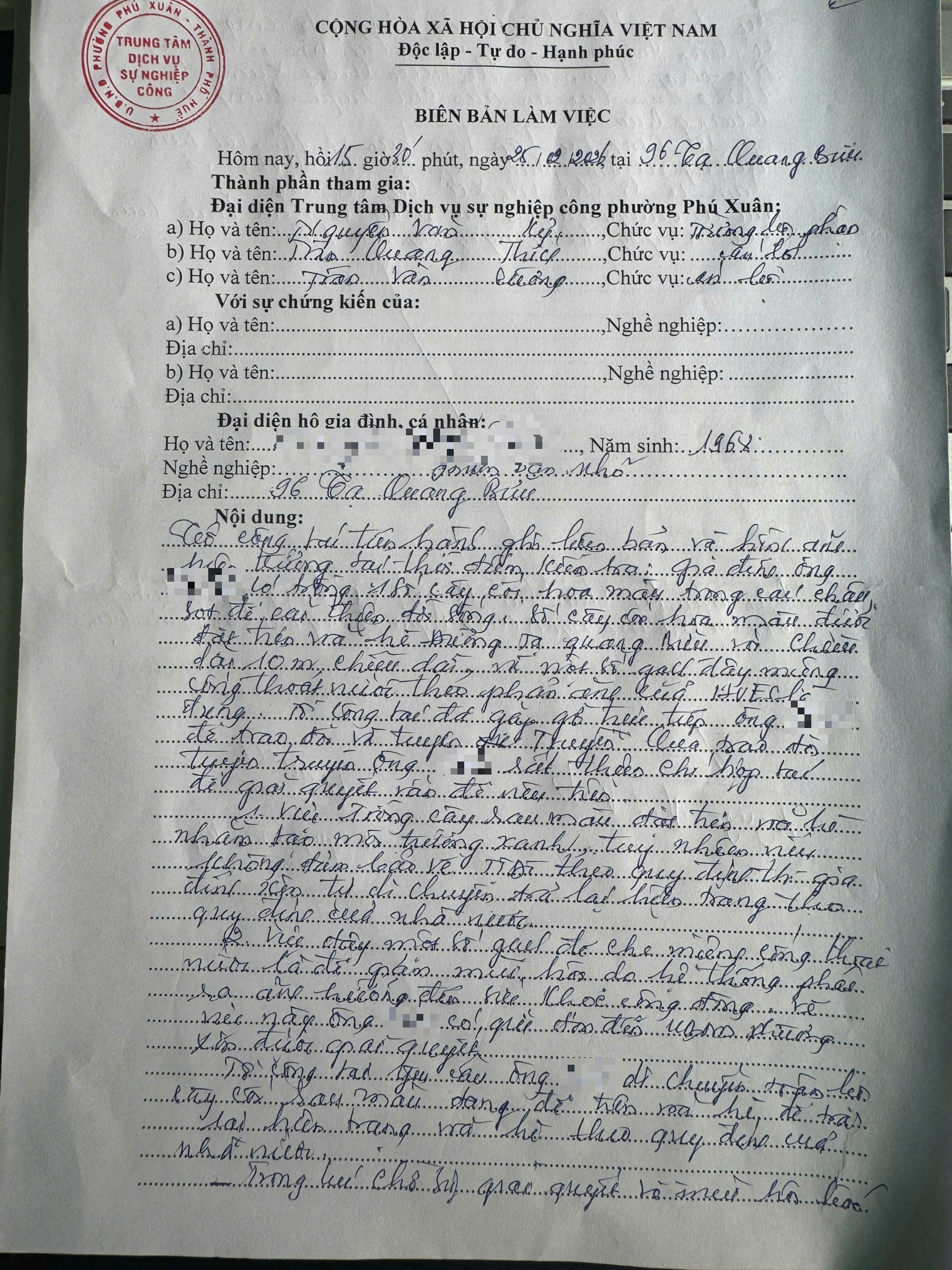 Vấn đề quý Ông/Bà phản ánh, UBND phường Phú Xuân đã chỉ đạo Trung tâm Dịch vụ sự nghiệp công phường kiểm tra và xin thông báo kết quả như sau: