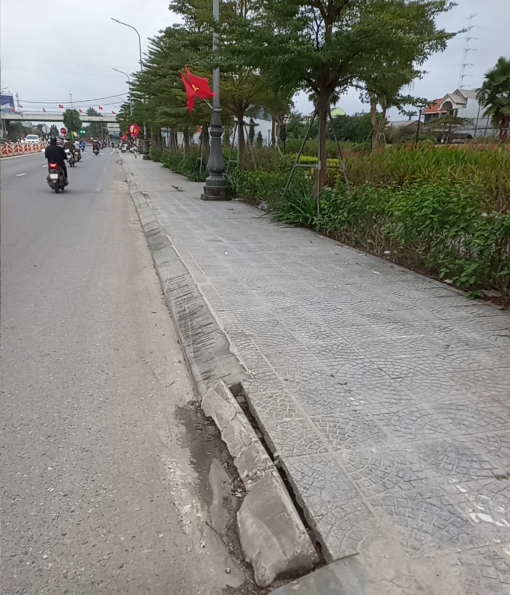 Bó vỉa hè ở đối diện số 103 Nguyễn Tất Thành, phường Thanh Thủy bị hư hỏng....