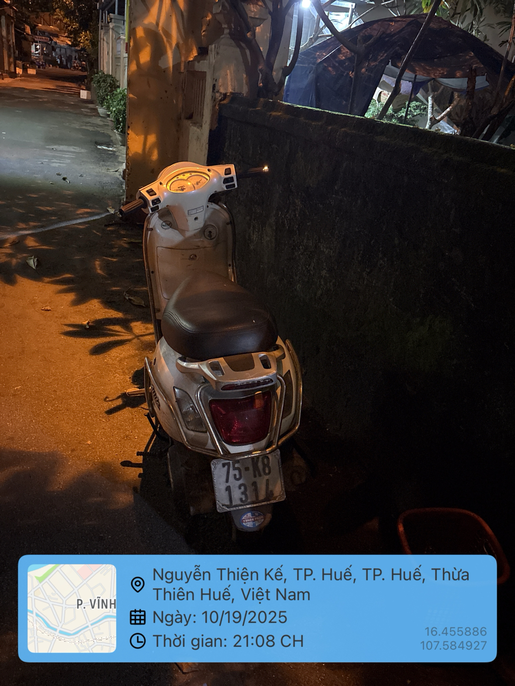 Xe máy mang biển kiểm soát 75K81314 của số nhà 45 Nguyễn Thiện Kế, phường Thuận Hoá, Thành phố Huế bỏ tháng này qua tháng nọ ngoài đường 24/24, gây ảnh hưởng đến giao thông trong kiệt nhỏ tại số nhà 24 Nguyễn Thiện Kế.