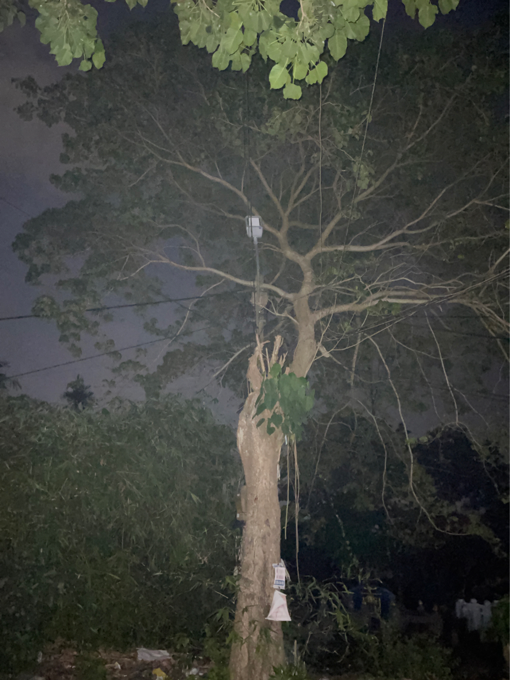 Bóng đèn chiếu sáng trước số nhà 222 đường Ngự Bình, phường Thuận Hóa sau 23h30 không sáng, trong khi đó các bóng còn lại đều sáng.
