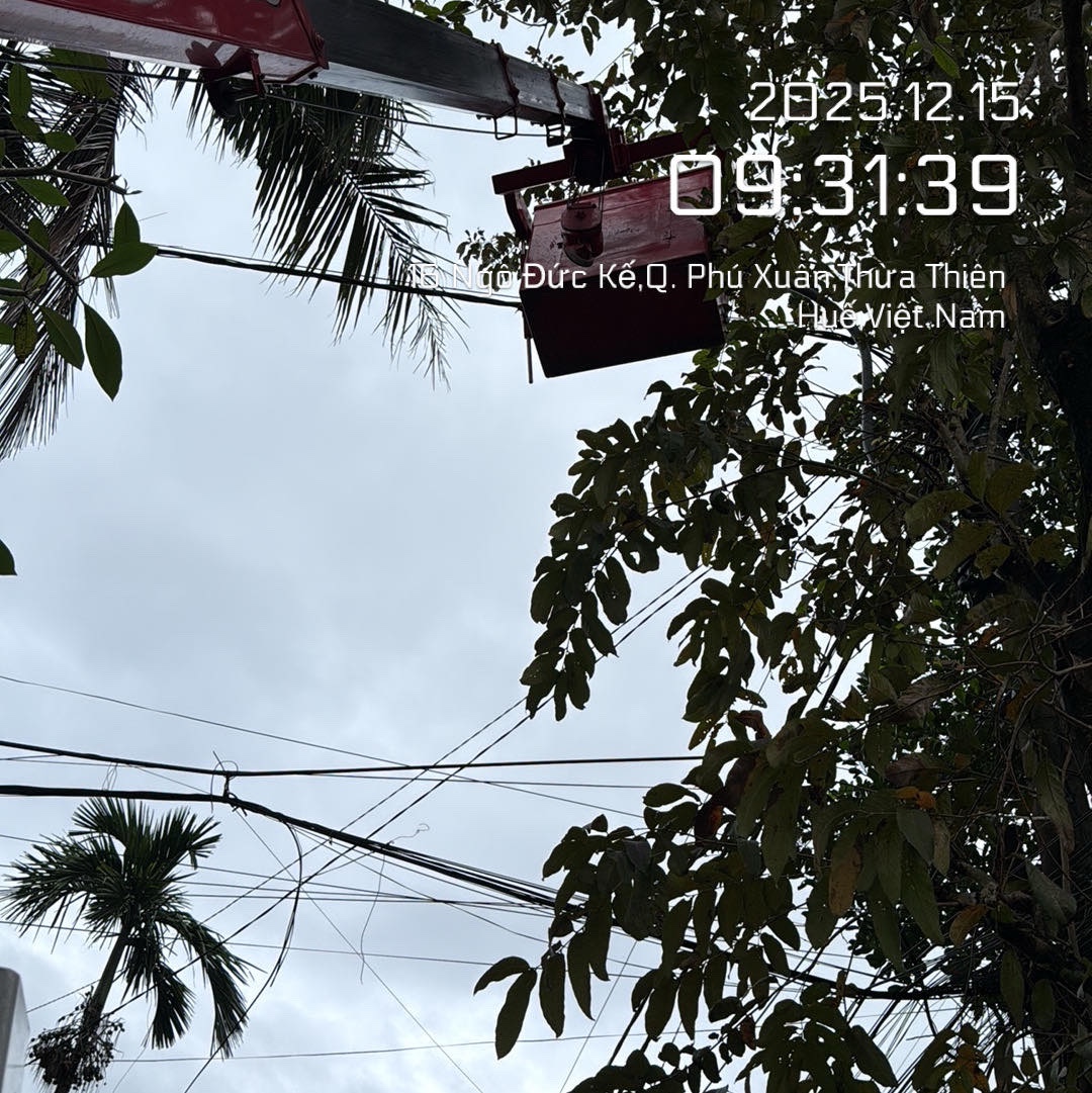 Bóng đèn đường trước số nhà 23 Ngô Đức Kế phường Phú Xuân không sáng. Ảnh chụp vào 18h30 ngày 10/12/2025. Đề nghị cơ quan chức năng liên quan xử lý.