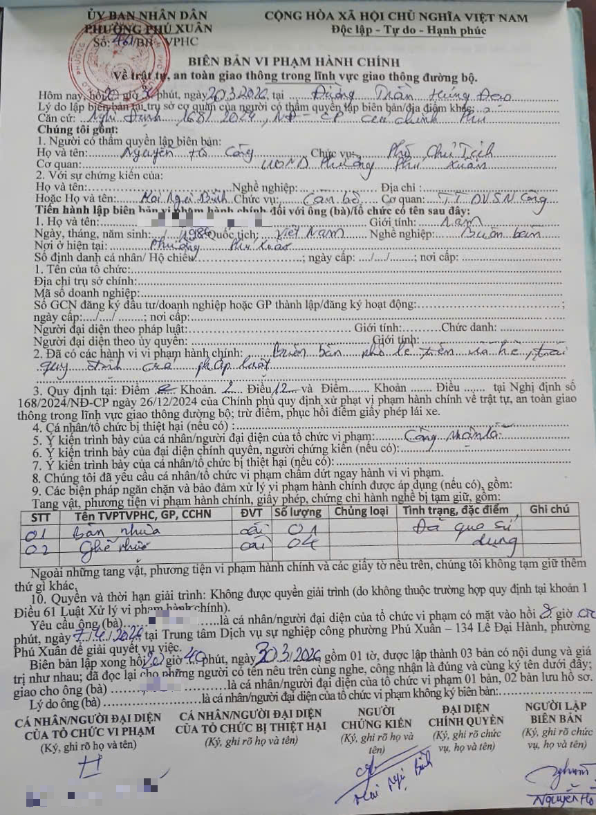 Bên cạnh đó, Tổ công tác yêu cầu các cá nhân vi phạm khẩn trương thu dọn toàn bộ bàn ghế, vật dụng phục vụ hoạt động kinh doanh ra khỏi khu vực vỉa hè bị lấn chiếm và cam kết không tái diễn hành vi vi phạm.