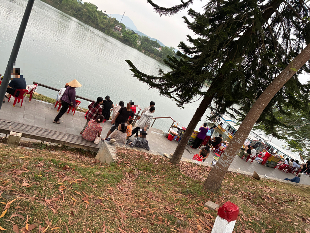 Đường đi bộ và những hàng ghế ngồi nghỉ bị những người buôn bán hàng rong chiếm dụng hết để bán đậu hũ, tào phớ, bánh lọc. Ảnh hưởng đến những người đi, đây không còn là con đường đi dạo mát nữa mà là nơi kinh doanh buôn bán phức tạp, đi qua thì mùi hôi khó chịu, chèo kéo người đi ăn uống, ghế thì bị chiếm hết để ngồi ăn buôn bán chả còn dám ngồi nghỉ. Đề nghị chính quyền xử lý trả lại không gian thoáng mát. Ảnh được chụp ngày 19/4/2026. Địa chỉ: Đường đi bộ phía trước chùa Thiên Mụ, phường Kim Long, Thành phố Huế.