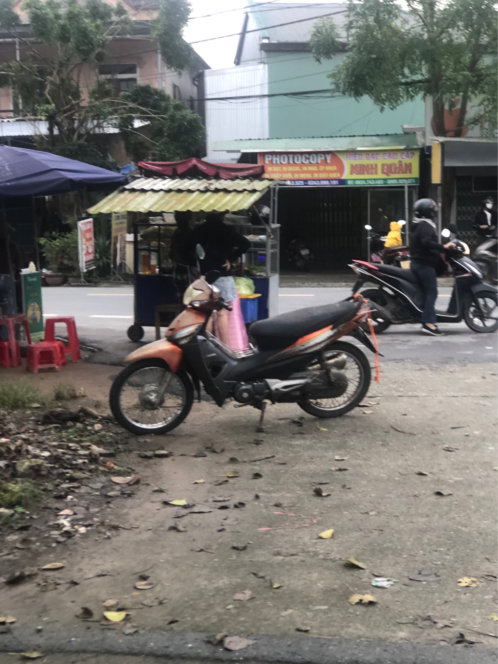 Tại ngã 4 cây Sanh - thôn Sơn Tùng (xã Quảng Vinh cũ), xã Đan Điền, xe đẩy bán đồ ăn sáng này để xe lấn chiếm lòng lề đường, người dân dừng lại mua đậu xe rất nguy hiểm. Giờ cao điểm đoạn đường này nhiều học sinh và người lớn tham gia giao thông. Tấm tôn trên xe đẩy cũng chắn tầm nhìn cho người đi đường.