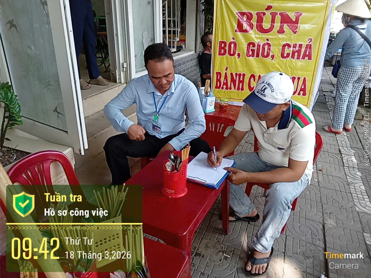 Trung tâm đã tiến hành lập biên bản làm việc với ông T.D.Q - chủ quán. Trung tâm yêu cầu ông Q di chuyển toàn bộ đồ dùng vào bên trong khuôn viên quán, không được đổ nước thải ra vỉa hè gây mất vệ sinh môi trường, ảnh hưởng đến người dân xung quanh. Trung tâm sẽ thường xuyên kiểm tra, nếu phát hiện vi phạm sẽ xử lý theo quy định (đính kèm biên bản làm việc và hình ảnh).