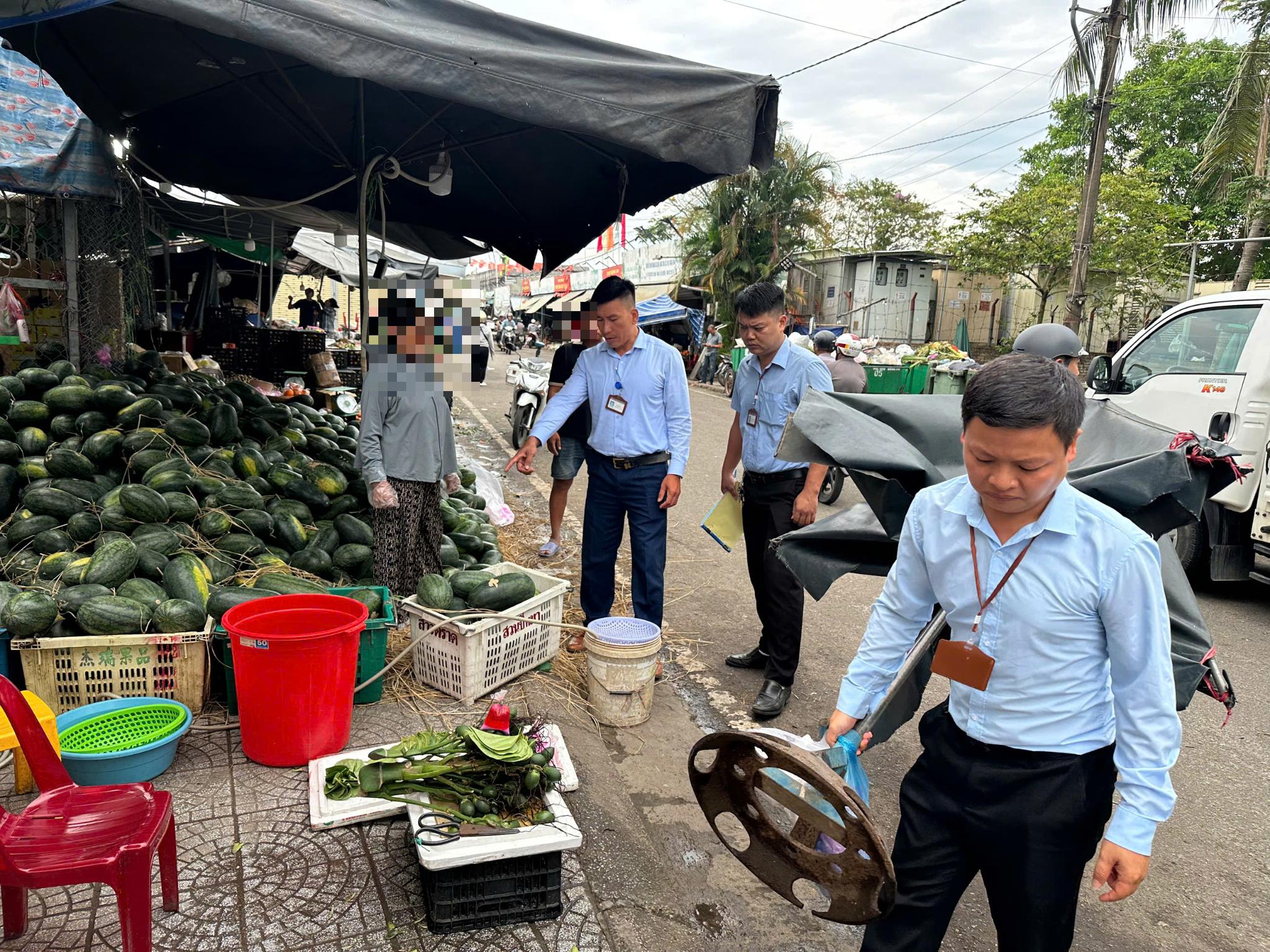 Tổ công tác đã tiến hành lập biên bản vi phạm hành chính với bà N.T.K - hộ buôn bán tại địa chỉ nêu trên; tạm giữ tang vật vi phạm theo quy định. Tổ công tác đã yêu cầu bà K. chấm dứt ngay hành vi lấn chiếm vỉa hè làm nơi tập kết hàng hóa buôn bán; nghiêm túc thực hiện các quy định về trật tự đô thị, vệ sinh môi trường, đảm bảo mỹ quan đô thị và việc đi lại của người dân trong khu vực. Đồng thời, yêu cầu cam kết không tái phạm.