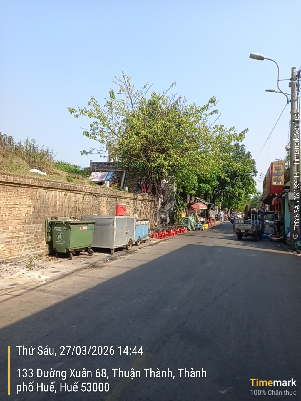 Buôn bán lấn chiếm vỉa hè đối diện 99 đường Xuân 68, phường Phú Xuân. Hình ảnh chụp vào lúc 14h44 ngày 27/3/2026. Kính mong cơ quan chức năng xử lý.