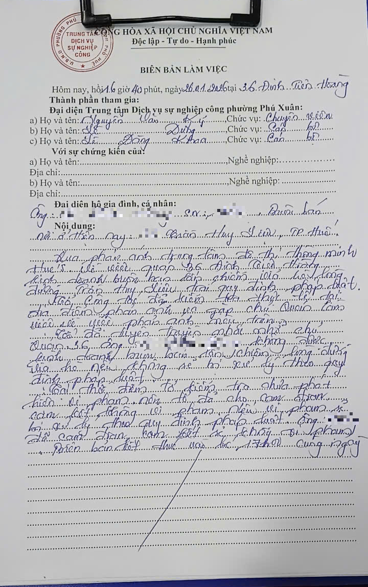 Sau khi tiếp nhận phản ánh, Trung tâm Dịch vụ sự nghiệp công đã cử Tổ công tác đến kiểm tra tại địa chỉ số 36 đường Đinh Tiên Hoàng, phường Phú Xuân.