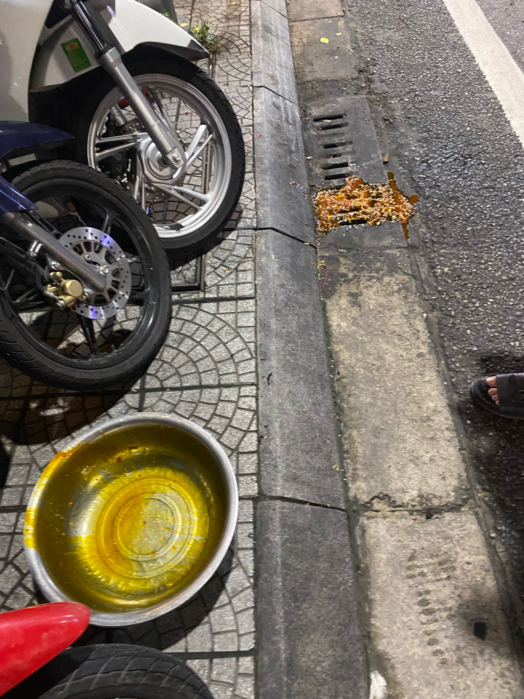 Quán nướng vỉa hè ở gần ngã ba An Dương Vương-Hồ Đắc Di gần bên KI ỐT Trà, bán vào buổi tối lấn chiếm vỉa hè lòng lề đường đi lại, đổ chất thải bẩn ra lề đường, khói nướng gây ô nhiễm cho người xung quanh và mất mỹ quan đô thị. Tên quán nướng là quán nướng Tí. Thời gian chụp vào lúc 22 giờ 16 phút ngày 11/10/2025 tại 98 An Dương Vương.