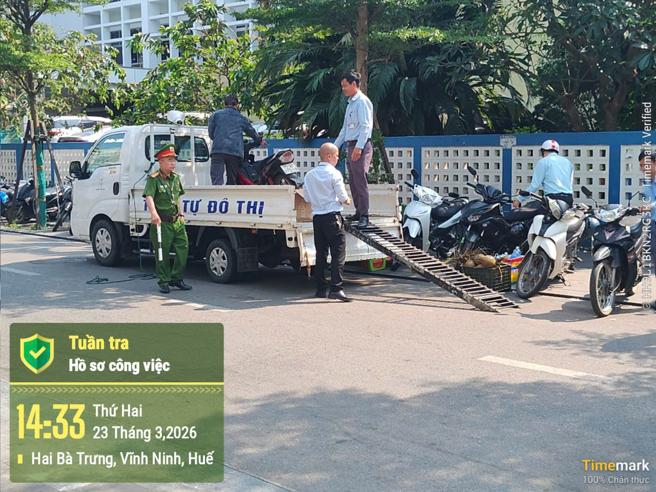 Lực lượng trật tự đô thị đã phối hợp với Công an phường Thuận Hóa tiến hành lập biên bản vi phạm, đồng thời thu giữ các tang vật liên quan theo quy định.