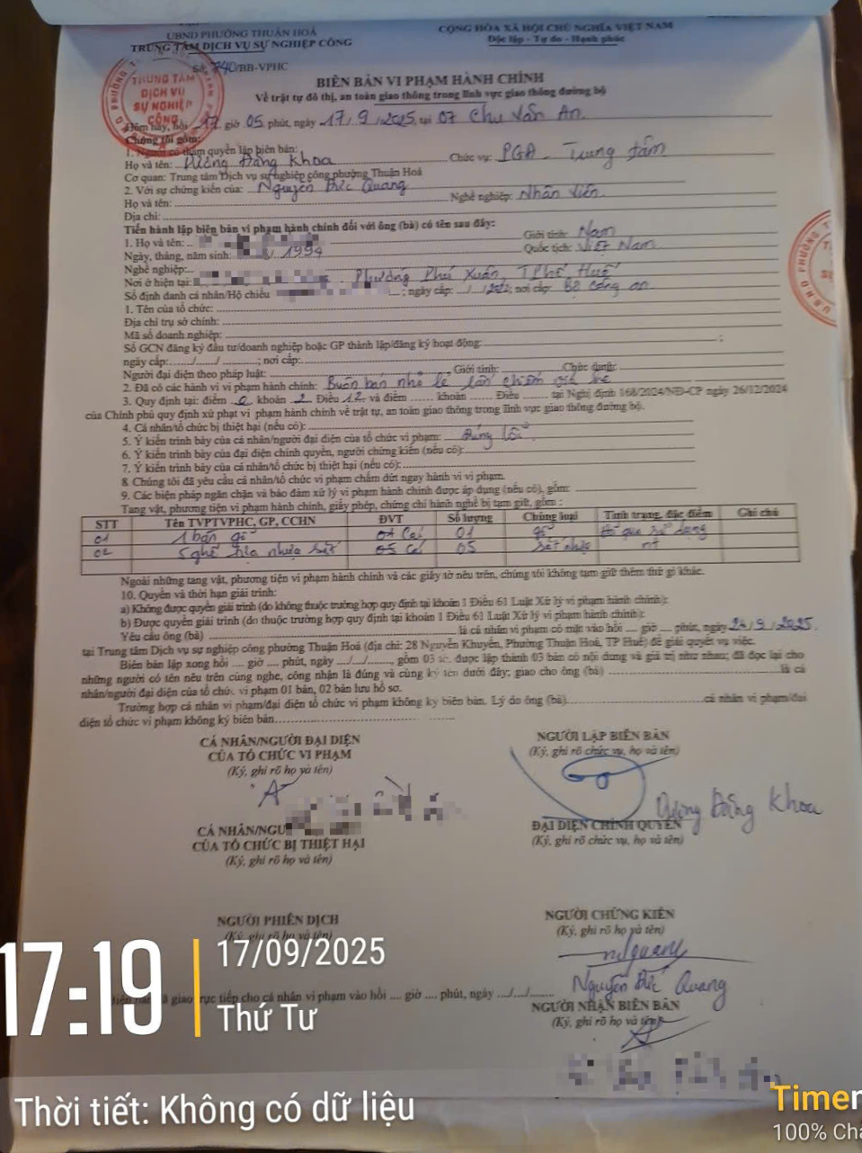 Sau khi nhận được thông tin phản ánh, Trung tâm Dịch vụ sự nghiệp công phường Thuận Hoá đã chỉ đạo bộ phận trật tự xây dựng - trật tự đô thị tiến hành kiểm tra tại điểm phản ánh và lập biên bản vi phạm hành chính về lỗi vi phạm lấn chiếm vỉa hè để buôn bán. (Có hình ảnh kèm theo)
