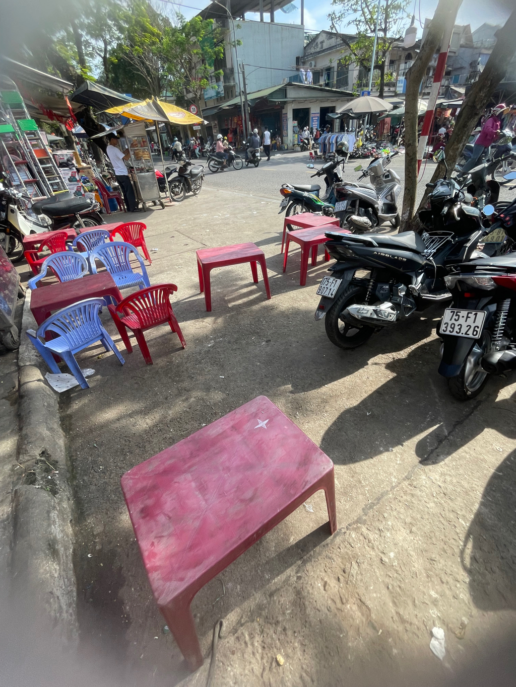 Quán xôi gà vỉa hè lấn chiếm vỉa hè trước mặt chợ Tây Lộc từ số 160 đến 168 Nguyễn Trãi.