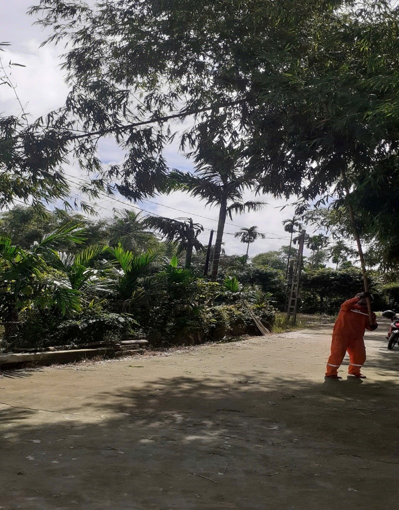 Qua kiểm tra nhận thấy hệ thống điện và trụ điện đảm bảo an toàn, một số nhánh cây vướng vào dây điện, Đội quản lý điện Phong Điền đã xử lý dứt điểm.