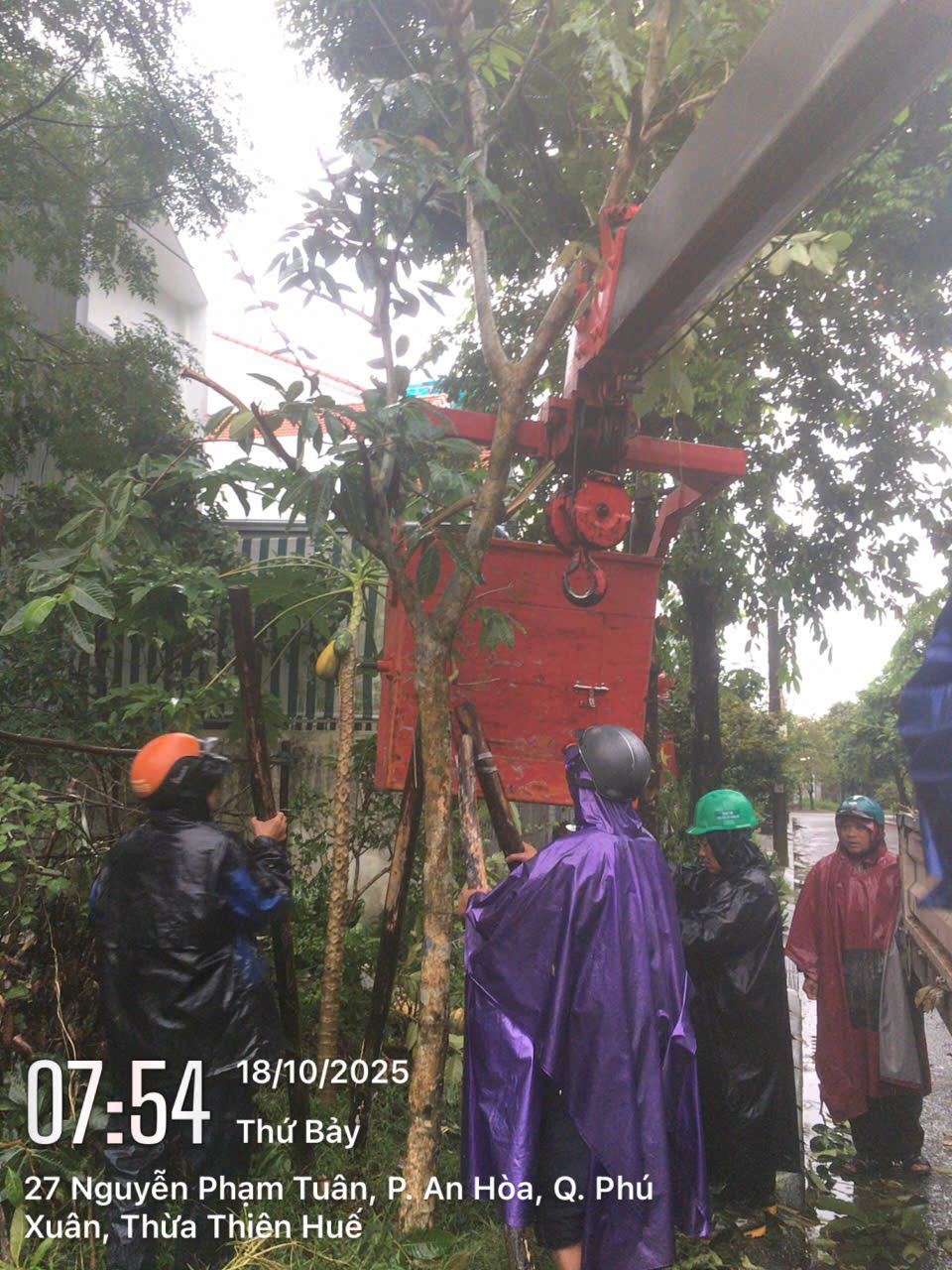 Cây xanh bên cạnh nhà số 25 đường Nguyễn Phạm Tuân, phường Hương An, Tp Huế bị nghiêng do cơn bão đợt trước. Đề nghị cơ quan chức năng quan tâm xử lý đảm bảo an toàn.