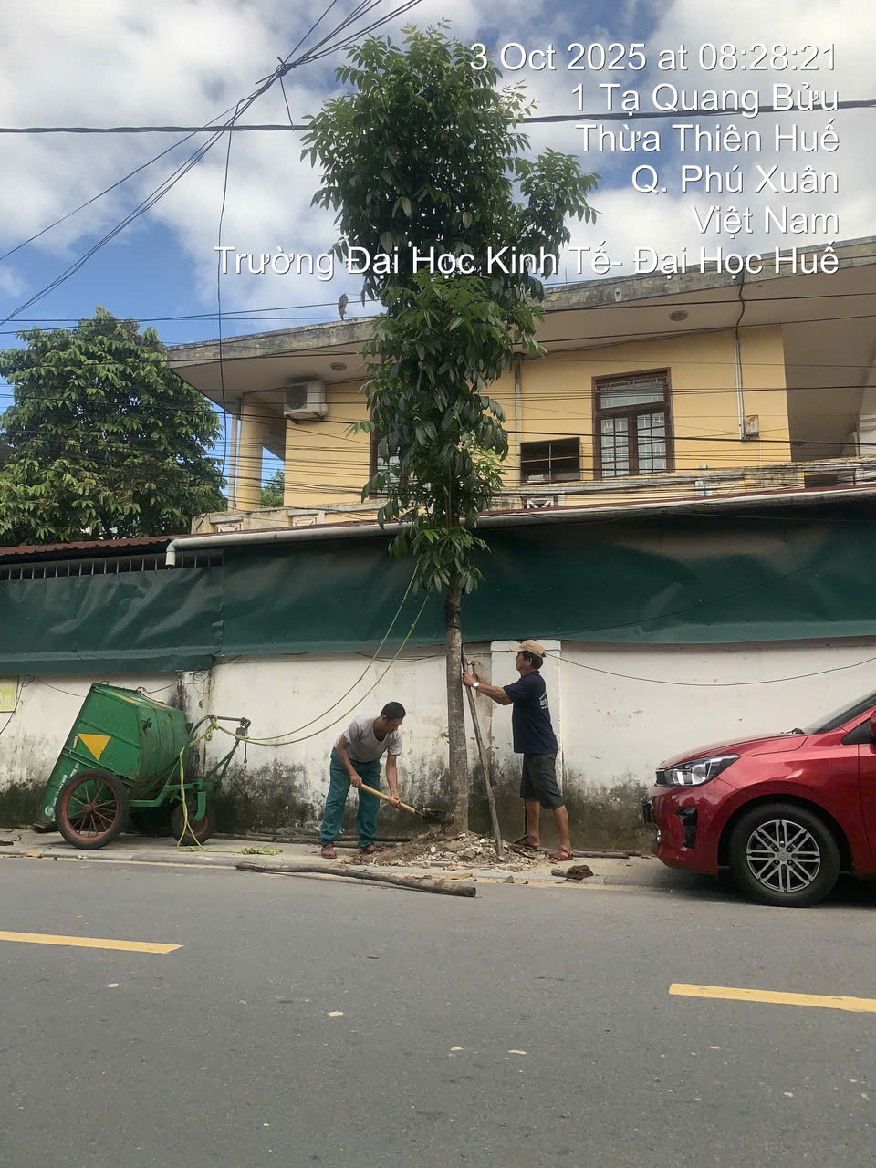 Ngày 03/10/2025, đơn vị thi công đã tiến hành chống đỡ lại cây xanh bị nghiêng do bão số 10 tại đường Tạ Quang Bửu (đính kèm hình ảnh).