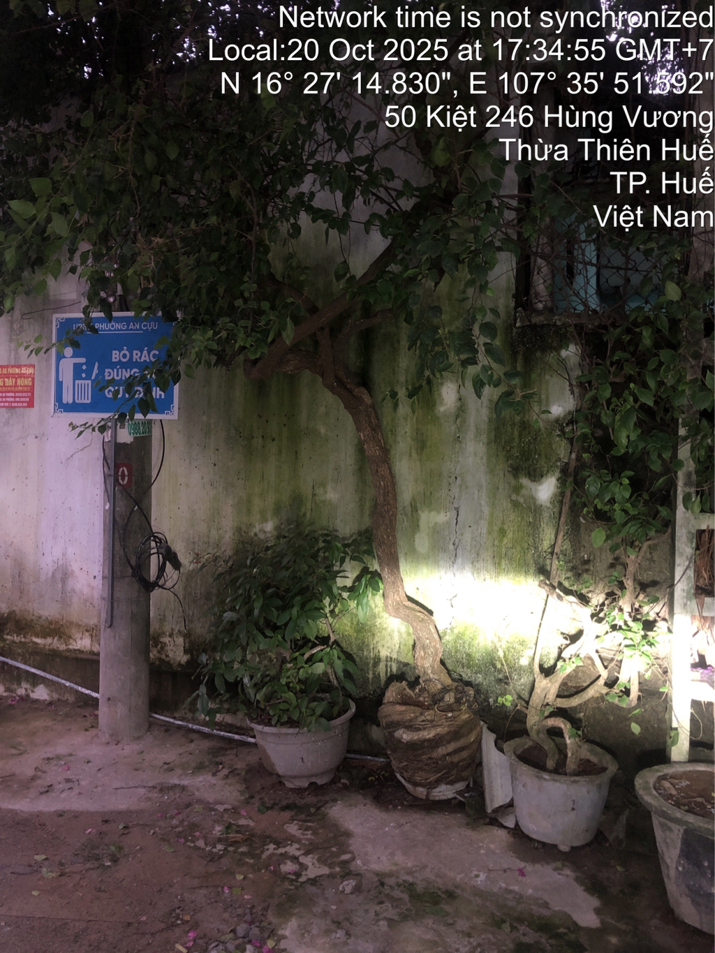 Trụ điện trước nhà 44 kiệt 246 Hùng Vương, phường An Cựu, bị cây bông giấy che khuất, đè dây điện. Mùa mưa bão sắp tới rất nguy hiểm. Kính mong các cơ quan chức năng xem xét xử lý. Xin cảm ơn.