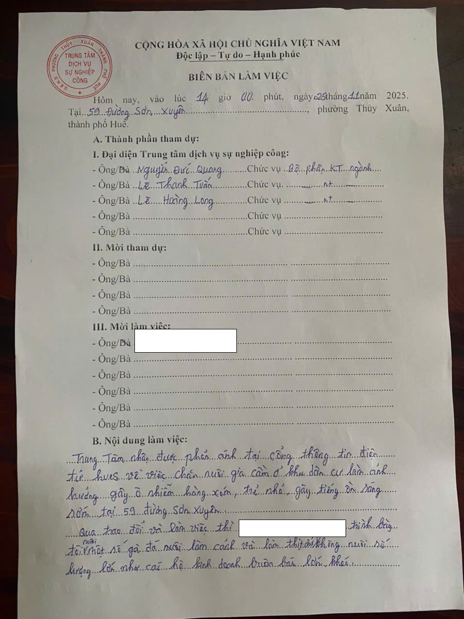 Trung tâm Dịch vụ sự nghiệp công phường (Trung tâm) yêu cầu ông che chắn, dọn dẹp vệ sinh chất thải chăn nuôi đúng quy định, nếu ông không chấp hành Trung tâm sẽ xử lý theo quy định của pháp luật.