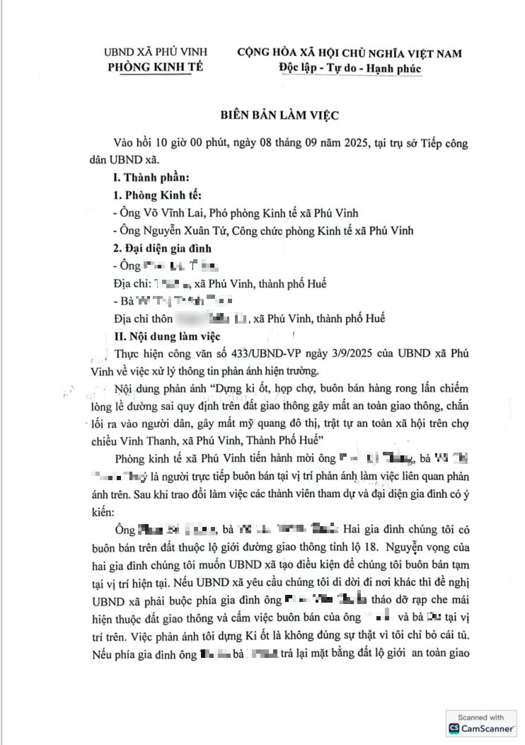 Ngày 08/9/2025, Phòng Kinh tế xã Phú Vinh đã tiến hành mời 02 hộ buôn bán liên quan đến vị trí phản ánh làm việc. Tại buổi làm việc Phòng Kinh tế đã yều cầu các hộ buôn bán không được buôn bán trên phần đất giao thông tuyến đường tỉnh lộ 18 và phải tháo dỡ kiot trước ngày 15/9/2025. Quá thời gian trên nếu không thực hiện đảm bảo UBND xã xử lý theo quy định pháp luật. (Đính kèm biên bản làm việc)