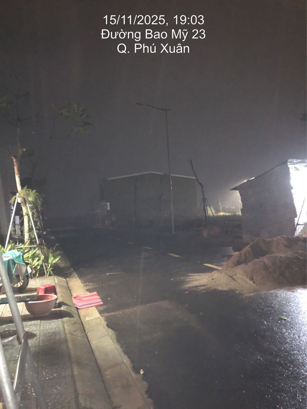 Đường Bao Mỹ 23, khu quy hoạch Hương Sơ vẫn chưa có điện đường rất không an toàn về mùa mưa, dù các ban ngành đã hứa ngày 20/10/2025 sẽ có điện. nhưng đến nay vẫn như cũ. Rất mong quý ban nghành quan tâm giải quyết. Ngày chụp ảnh 15/11/2025.