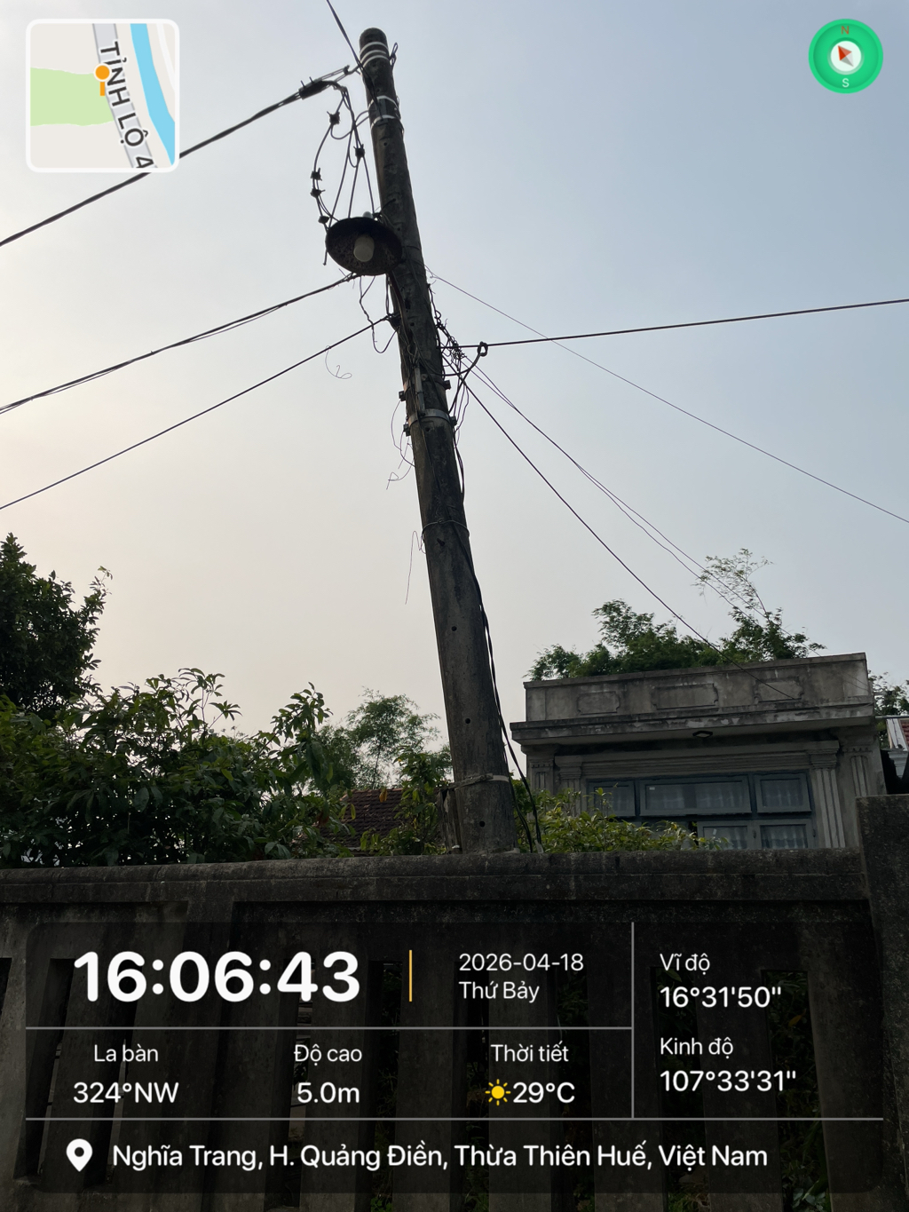 Tôi đã phản ánh cột điện tại cuối xóm 5, thôn Phú Lương A, phường Hoá Châu bị nghiêng vào ngày 13/01/2026 và bên phía Điện lực có trả lời sẽ xử lí trong quý I. Nhưng đến hiện tại ngày 18/04/2026 vẫn chưa được xử lí. Ảnh tôi chụp vào lúc 16:06 ngày 18/04.