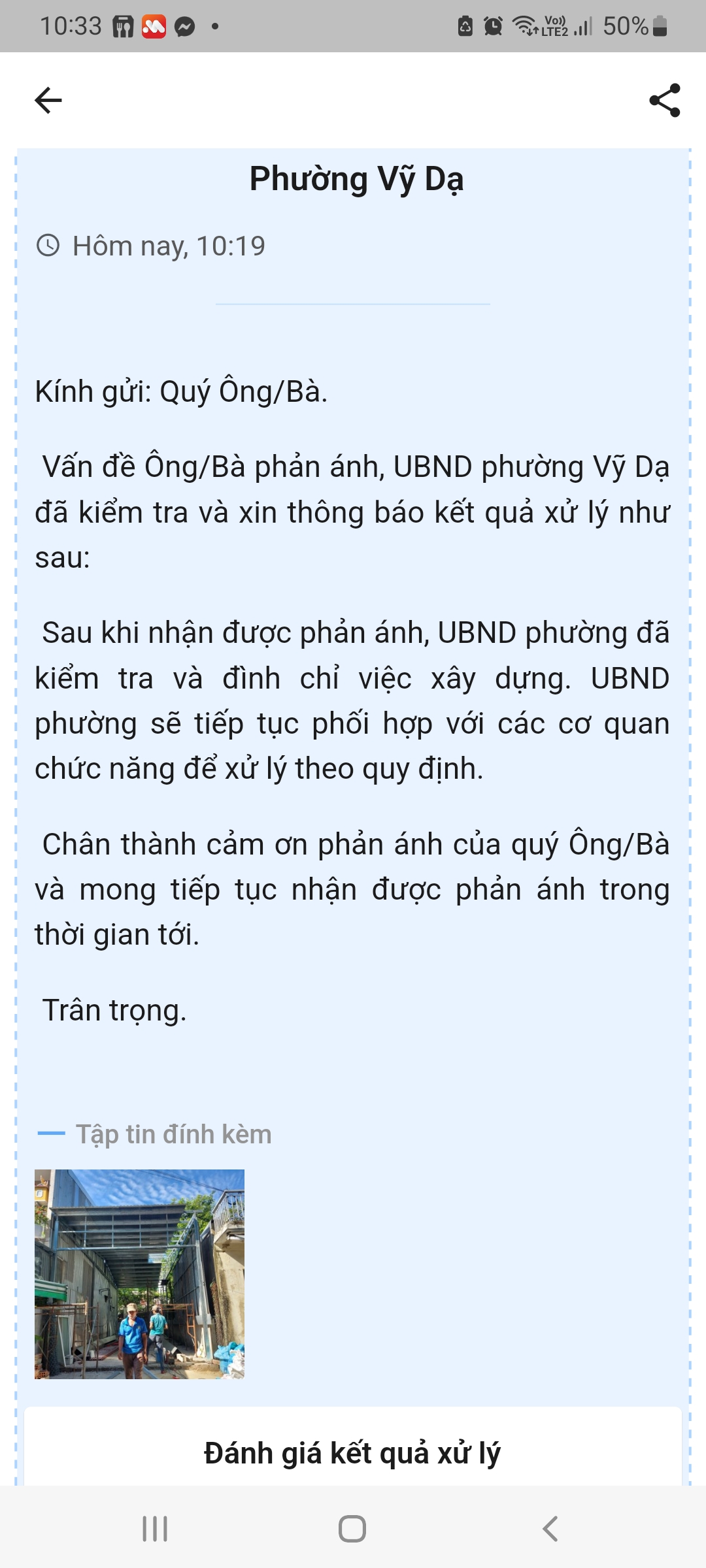 Vấn đề quý Ông/Bà phản ánh, UBND phường Vỹ Dạ xin thông báo kết quả xử lý như sau:
