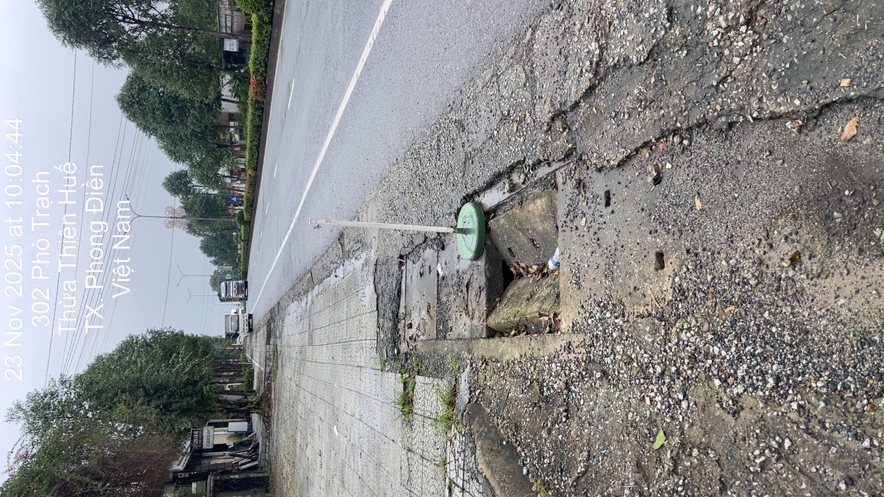 Cống thoát nước cạnh quốc lộ 1A ngay trước số nhà 296 đường Phò Trạch, phường Phong Điền bị bể sập, rất nguy hiểm. Đề nghị đơn vị quản lý khắc phục xử lý.