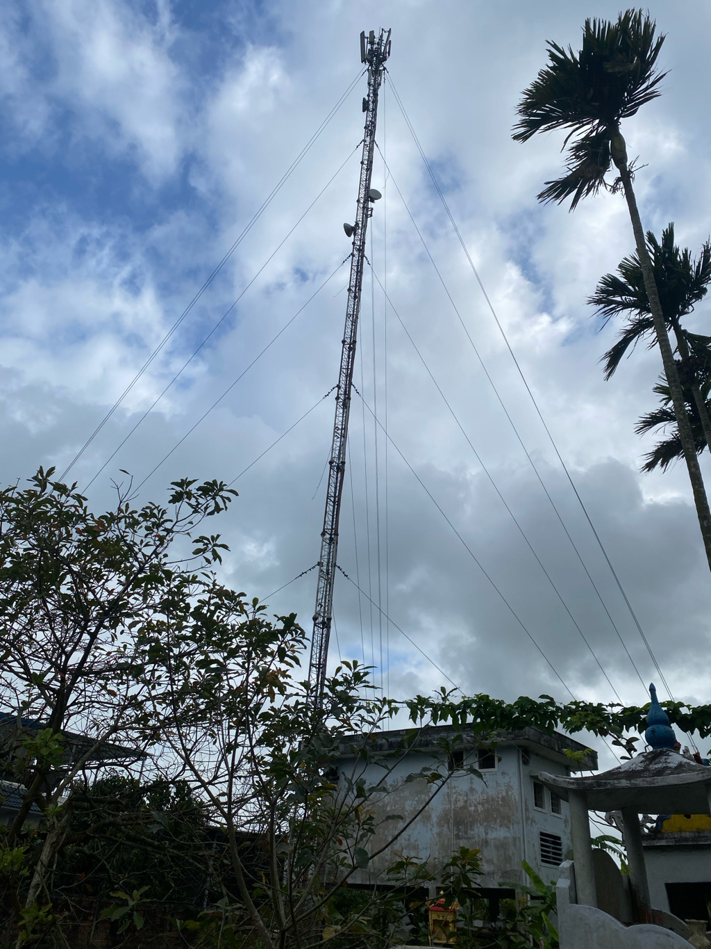 Công trình trạm phát sóng có dấu hiệu nghiêng khoảng 10 độ, khiến người dân lo ngại về nguy cơ mất an toàn, đặc biệt trong mùa mưa bão.