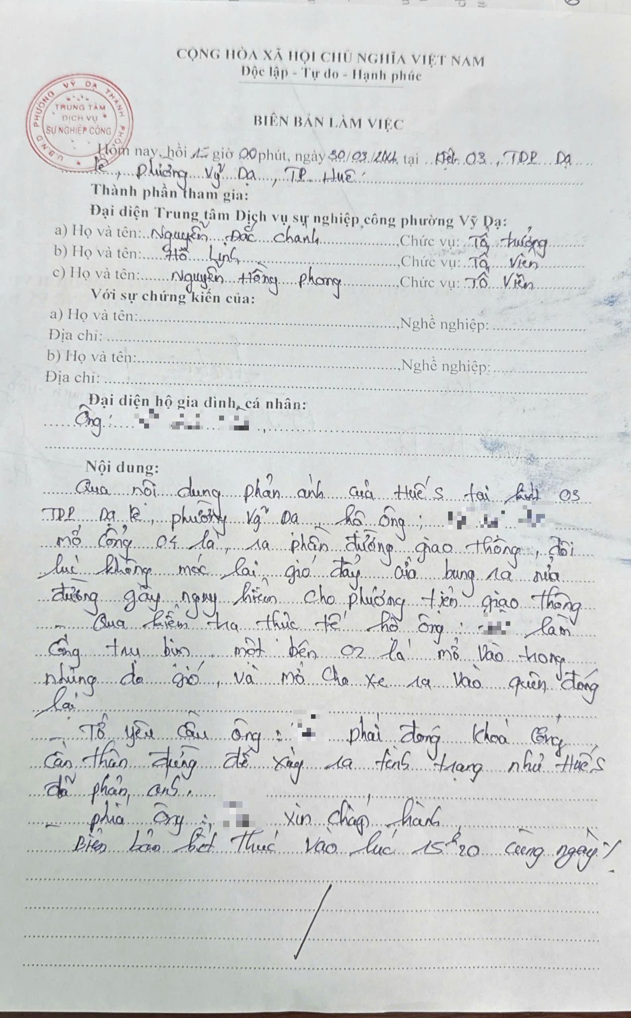 Sau khi nhận được phản ánh, UBND phường đã giao Trung tâm Dịch vụ sự nghiệp công phường Vỹ Dạ. Trung tâm đã tiến hành tiến hành kiểm tra và nhắc nhở chủ hộ tại địa chỉ nêu trên. Đồng thời yêu cầu chủ hộ khắc phục, không được tình trạng tái diễn như phản ánh. Chủ hộ cam kết các nội dung theo yêu cầu. (Đính kèm biên bản và hình ảnh)