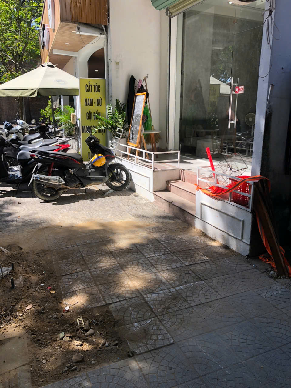 Trung tâm thực hiện dọp dẹp đất đá tại cột điện trước số nhà 03 Nguyễn Trãi, phường Phú Xuân, thành phố Huế.