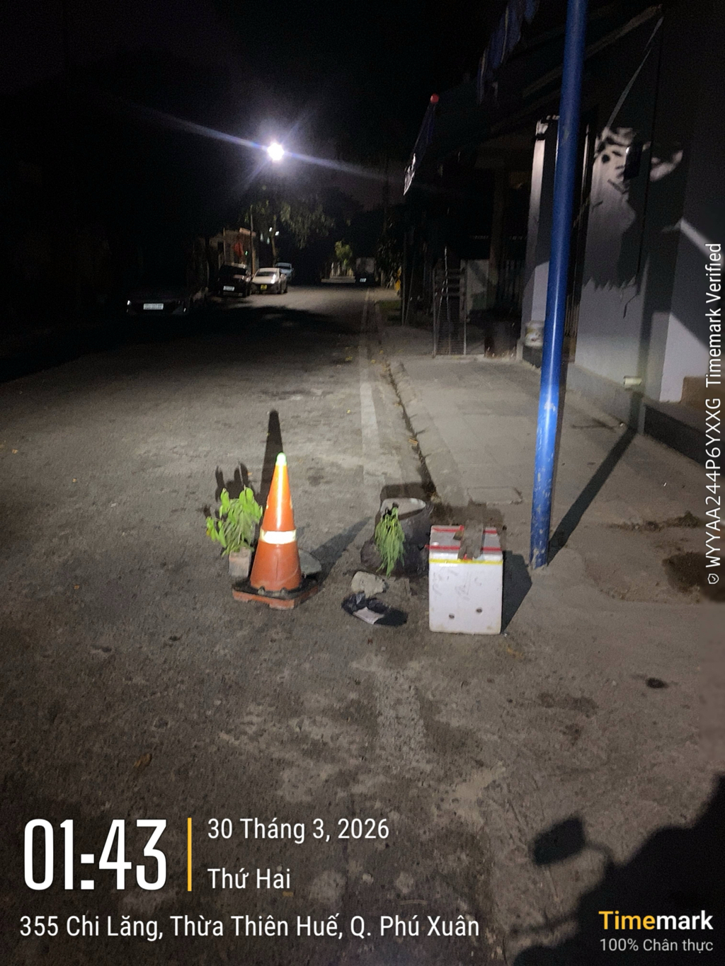 Kính gửi cơ quan chức năng, Tôi xin phản ánh tình trạng tại địa chỉ 355 Chi Lăng (phường Phú Xuân), hiện có hộ dân tự ý đặt các vật cản bao gồm: cọc tiêu giao thông, chậu cây, thùng xốp và gạch đá ngay dưới lòng đường.