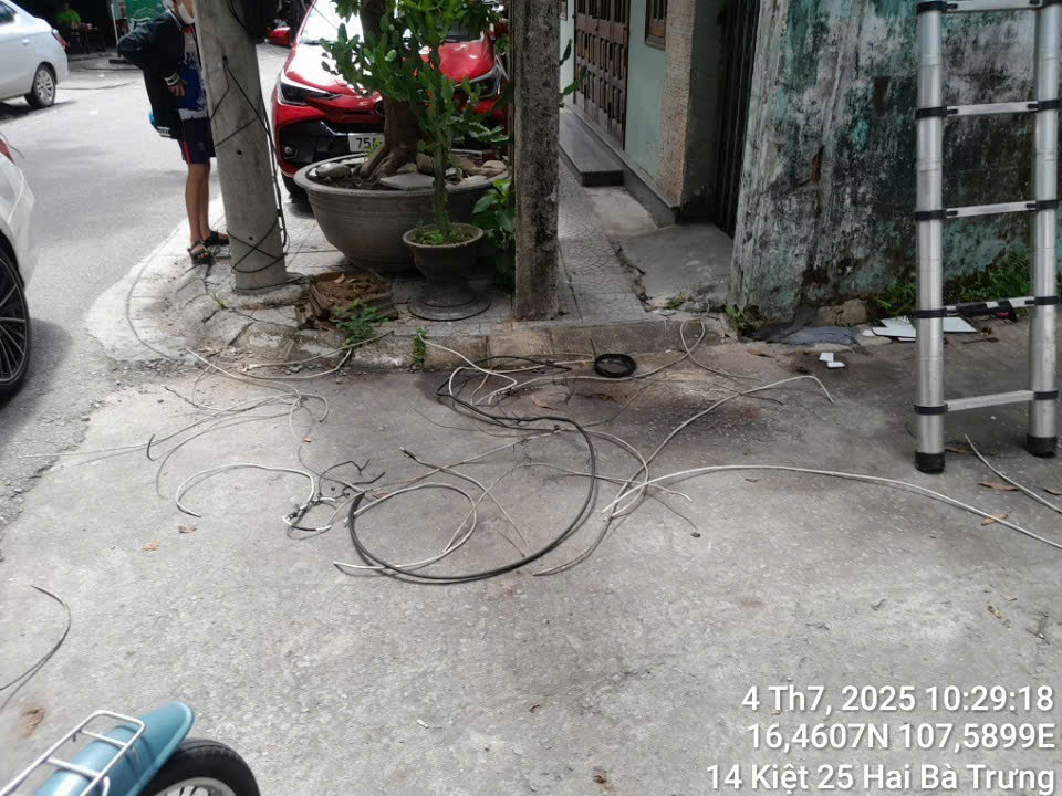 Kính đề nghị các cơ quan chức năng xử lý các loại dây điện và dây viễn thông, rất chằng chịt tại địa chỉ trước số nhà 18 kiệt 25 đường Hai Bà Trưng, phường Vĩnh Ninh, quận Thuận Hoá, thành phố Huế. Rất mất mỹ quan và nguy cơ chập cháy nổ. Xin cảm ơn.