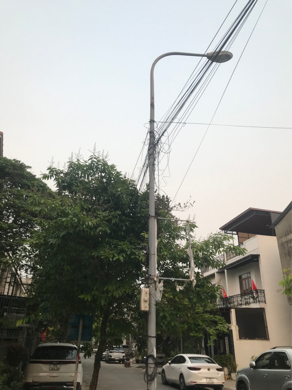 Tại khu A và B khu đô thị Mỹ Thượng đã lắp đặt dây mạng ngầm nhưng dây mạng vẫn còn chằng chịt trên không, làm mất mỹ quan đô thị. Và các bảng quảng cáo đã rách nằm trên các trụ điện. Đề nghị cơ quan chức năng xem xét xử lý. Ảnh chụp lúc 17h ngày 4/4/2026 tại khu B khu đô thị Mỹ Thượng