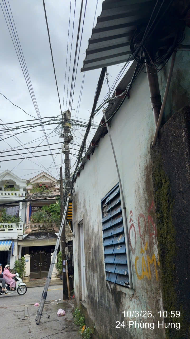 1. Dây cáp viễn thông tại kiệt 24 không được cố định chắc chắn, bị sà thấp xuống kiệt, tiềm ẩn nguy cơ mất an toàn cho người tham gia giao thông.