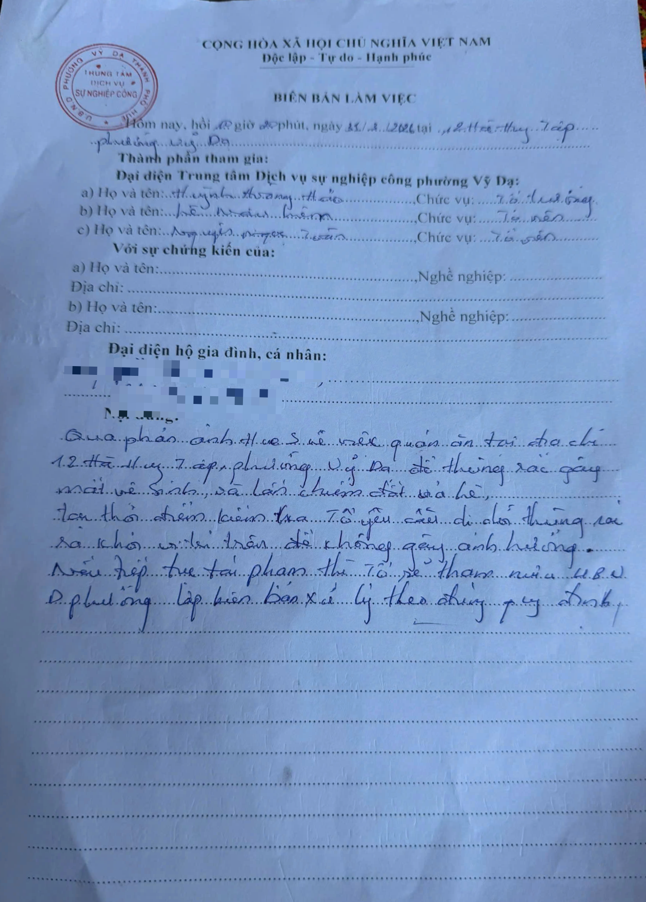 Sau khi nhận được phản ánh, UBND phường đã giao Trung tâm Dịch vụ sự nghiệp công phường kiểm tra và xử. Qua kiểm tra Trung tâm đã làm việc trực tiếp với chủ cơ sở kinh doanh và yêu cầu di chuyển thùng rác đến vị trí tập kết theo đúng quy định, đảm bảo vệ sinh môi trường và mỹ quan đô thị. Chủ cơ sở đã tiếp thu ý kiến và thực hiện theo yêu cầu.