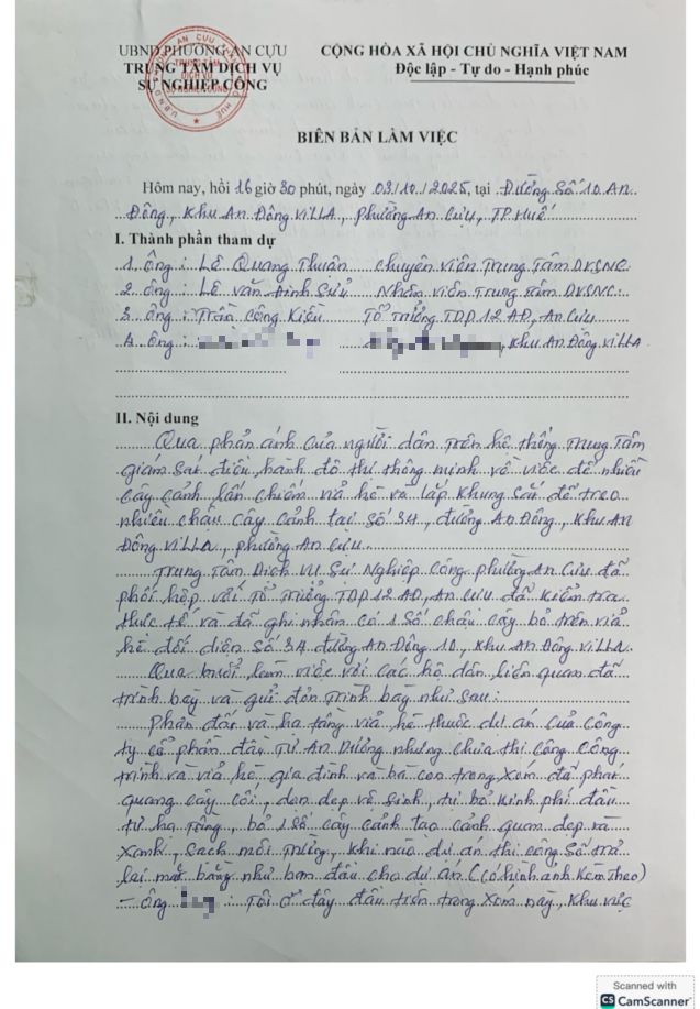 UBND phường đã phối hợp cùng tổ dân phố 12 An Đông đã kiểm tra thực tế. Hiện trạng phần đặt chậu cây cảnh của các hộ dân xung quanh như phản ánh, là phần diện tích đất và hạ tầng vỉa hè thuộc dự án của công ty cổ phần đầu tư An Dương nhưng chưa thi công công trình.