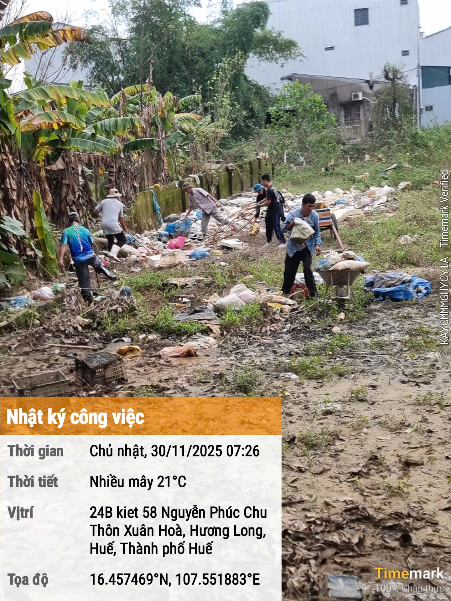 Tổ kiểm tra đã tiến hành làm việc với Bí thư chi bộ, Tổ trưởng tổ dân phố để tuyên truyền, vận động các hộ dân sinh sống xung quanh cùng tham gia tổng dọn vệ sinh. Trên cơ sở đó, ngày 30/11/2025, người dân Tổ dân phố 20 đã phối hợp với Công ty Môi trường và Công trình Đô thị Huế tổ chức ra quân thu gom, dọn dẹp toàn bộ rác thải tại khu vực nêu trên nhằm đảm bảo vệ sinh môi trường và giữ gìn cảnh quan khu dân cư. (Đính kèm hình ảnh)