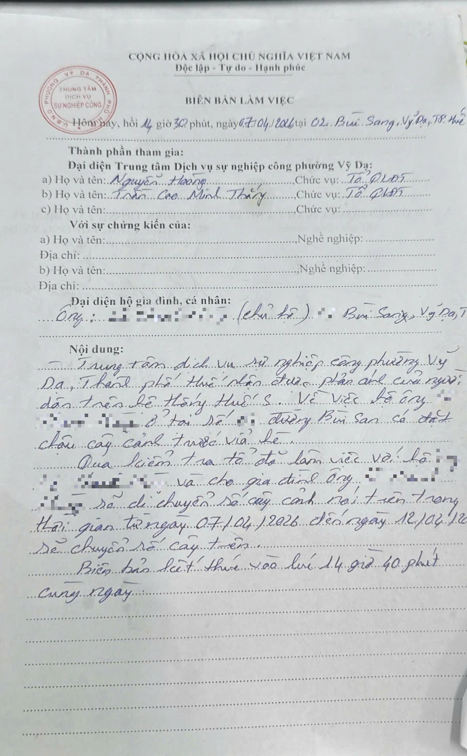 Vấn đề quý Ông/Bà phản ánh, UBND phường Vỹ Dạ xin thông báo kết quả như sau: