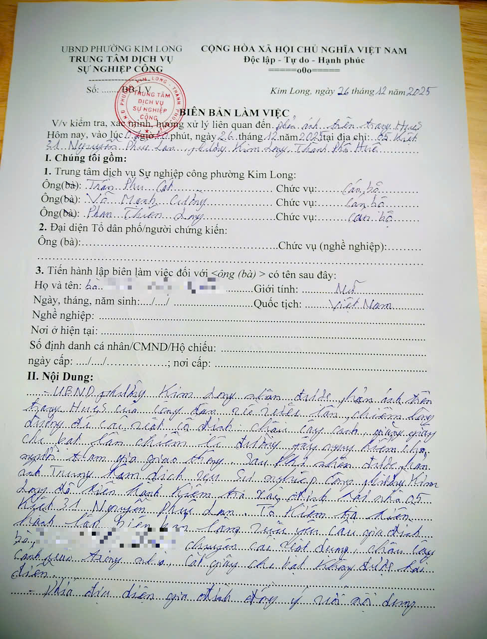 Vấn đề quý Ông/Bà phản ánh, UBND phường Kim Long xin thông báo kết quả như sau: