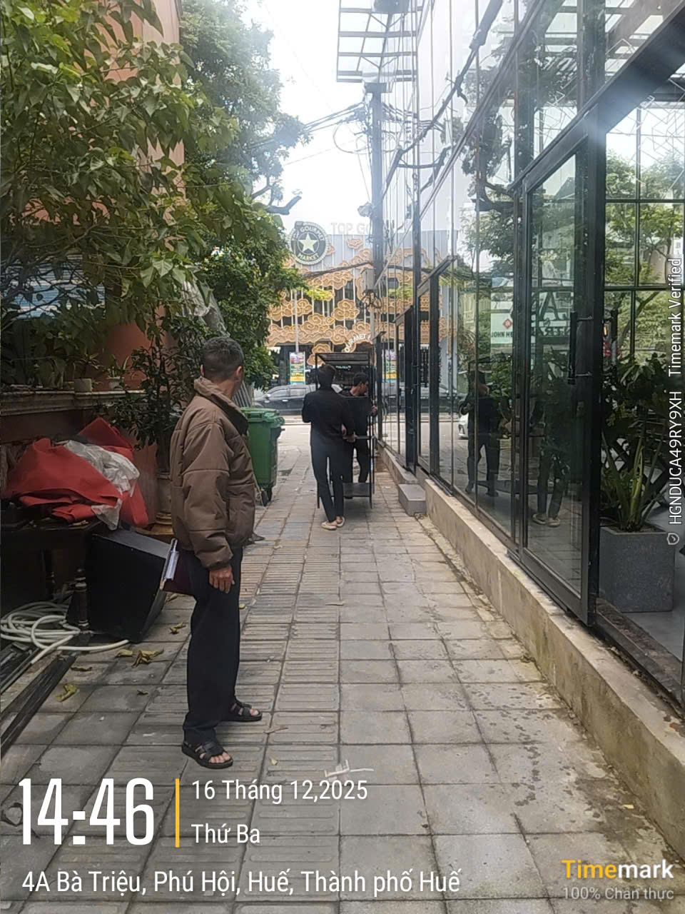 Trung tâm Dịch vụ sự nghiệp công phường Thuận Hoá đã chỉ đạo bộ phận Trật tự Đô thị tiến hành kiểm tra thực tế tại kiệt 22 Bà Triệu. Trung tâm đã lập biên bản với ông Đ.H.H - nhân viên quán, yêu cầu dọn dẹp các vật liệu đang ở khu vực kiệt 22 Bà Triệu.