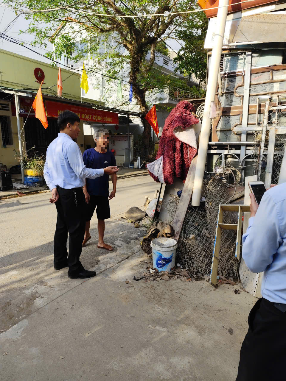 Sau khi nhận được phản ánh, Trung tâm Dịch vụ sự nghiệp công đã đến địa chỉ kiệt 52 Thánh Gióng; qua trao đổi với chủ hộ, ông thừa nhận việc có lấn chiếm đường kiệt để để các phế liệu khi thu mua về chưa kịp sắp xếp vào trong khuôn viên của gia đình. Tổ công tác đã nhắc nhở hướng dẫn hộ gia đình di chuyển sắp xếp các vật dụng vào đúng nơi quy định, trả lại lối đi thông thoáng cho người dân trong kiệt (đính kèm hình ảnh); công tác kiểm tra xử lý được tiến hành liên tục hàng ngày trên toàn bộ địa bàn phường.