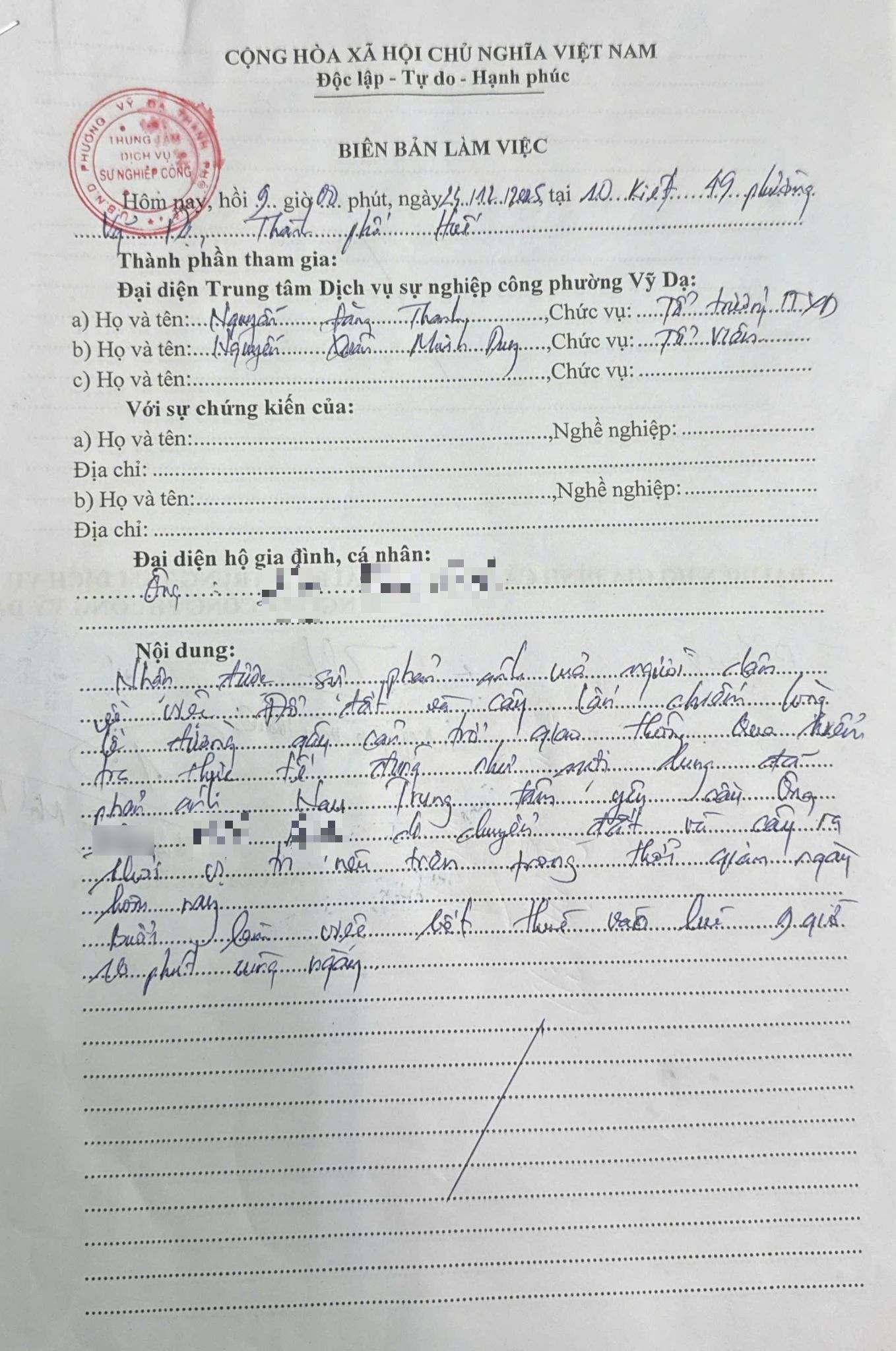 Vấn đề quý Ông/Bà phản ánh, UBND phường Vỹ Dạ xin thông báo kết quả như sau: