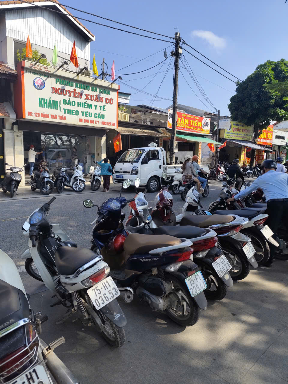 Sau khi nhận được phản ánh, Trung tâm Dịch vụ sự nghiệp công đã cử Tổ công tác tiến hành kiểm tra, khảo sát thực tế tại khu vực phản ánh. Qua kiểm tra, Tổ công tác đã lập biên bản vi phạm hành chính đối với 02 trường hợp gồm ông L.V.T (địa chỉ: 114 Đặng Thái Thân) và bà H.T.S (địa chỉ: 120 Đặng Thái Thân) về hành vi đậu, đỗ xe máy không đúng nơi quy định; đồng thời tạm giữ tang vật vi phạm theo quy định.